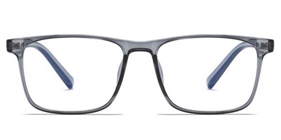 This contemporary rectangular eyeglass frame blends clean geometry with a refined, modern aesthetic. The translucent gray front offers a soft, sophisticated look, while the blue‑tinted inner temples add a subtle pop of color that feels stylish without being loud. Designed for comfort and versatility, this frame suits both professional and casual wear.