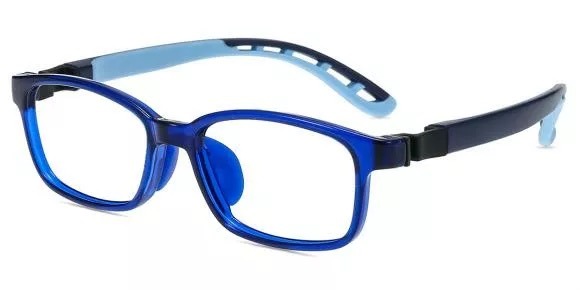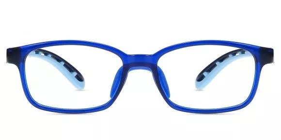A modern blue rectangular eyeglass frame with black accents and a light‑blue inner lining. Lightweight, stylish, and designed for everyday comfort with a clean, contemporary look.