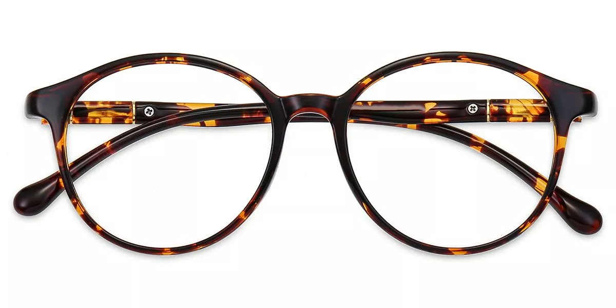 This round tortoiseshell eyeglass frame brings together vintage charm and modern versatility. The warm blend of brown and amber tones gives the frame a rich, expressive character, while the rounded silhouette adds a soft, fashionable touch. Whether worn casually or professionally, this frame delivers a timeless style that never feels overdone.